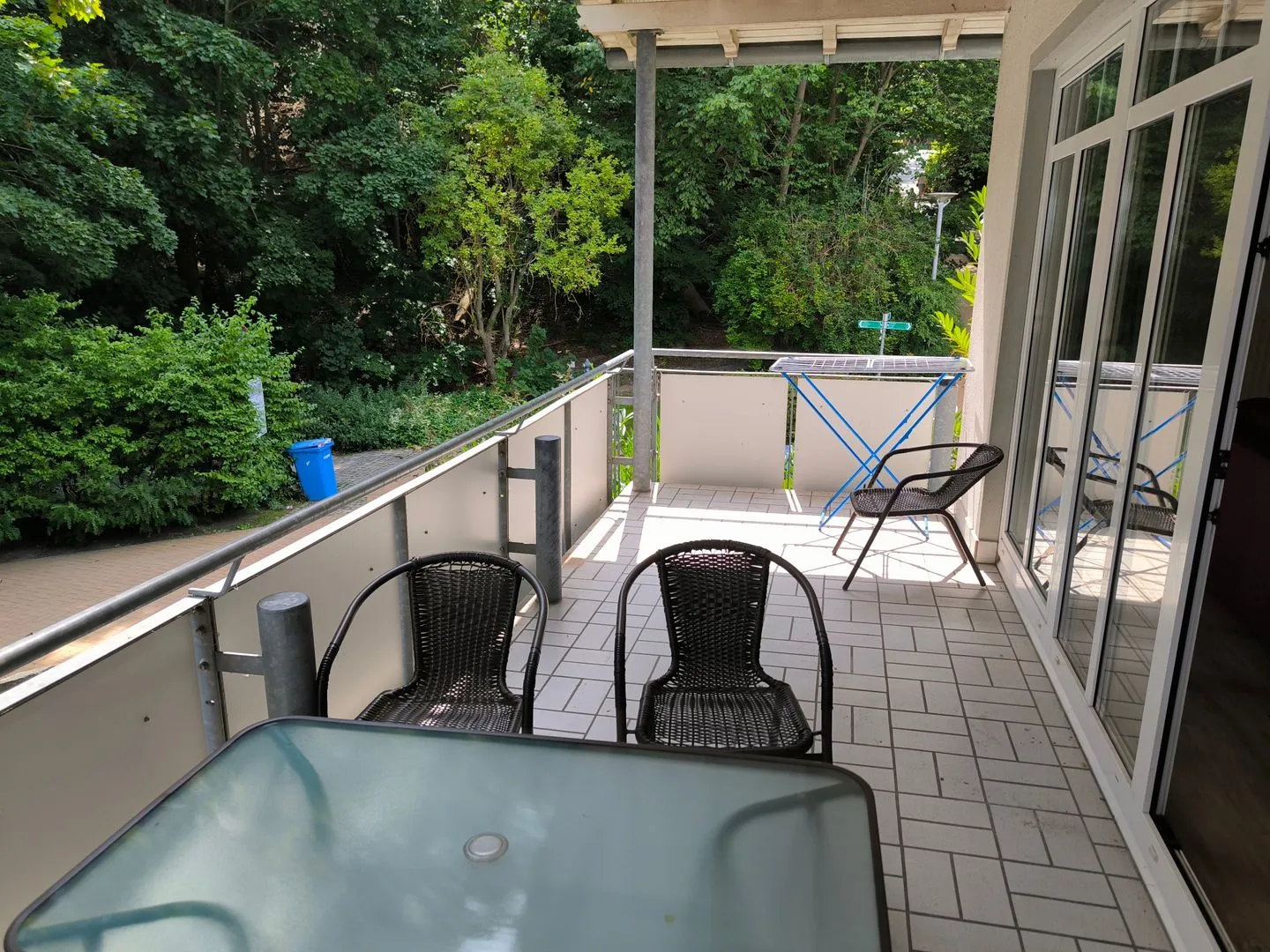 Die Ferienwohnung ist freundlich eingerichtet und hat einen Balkon.