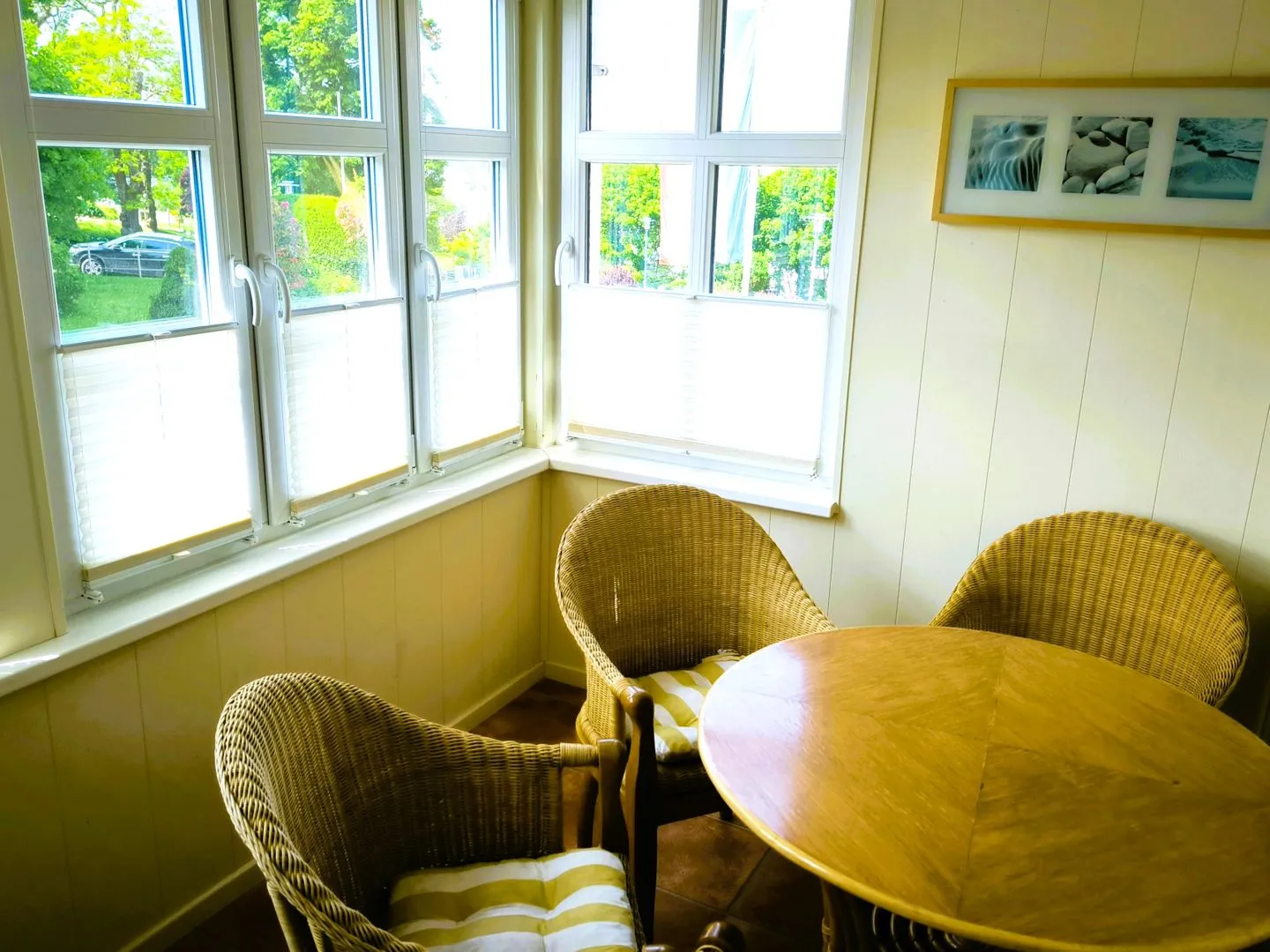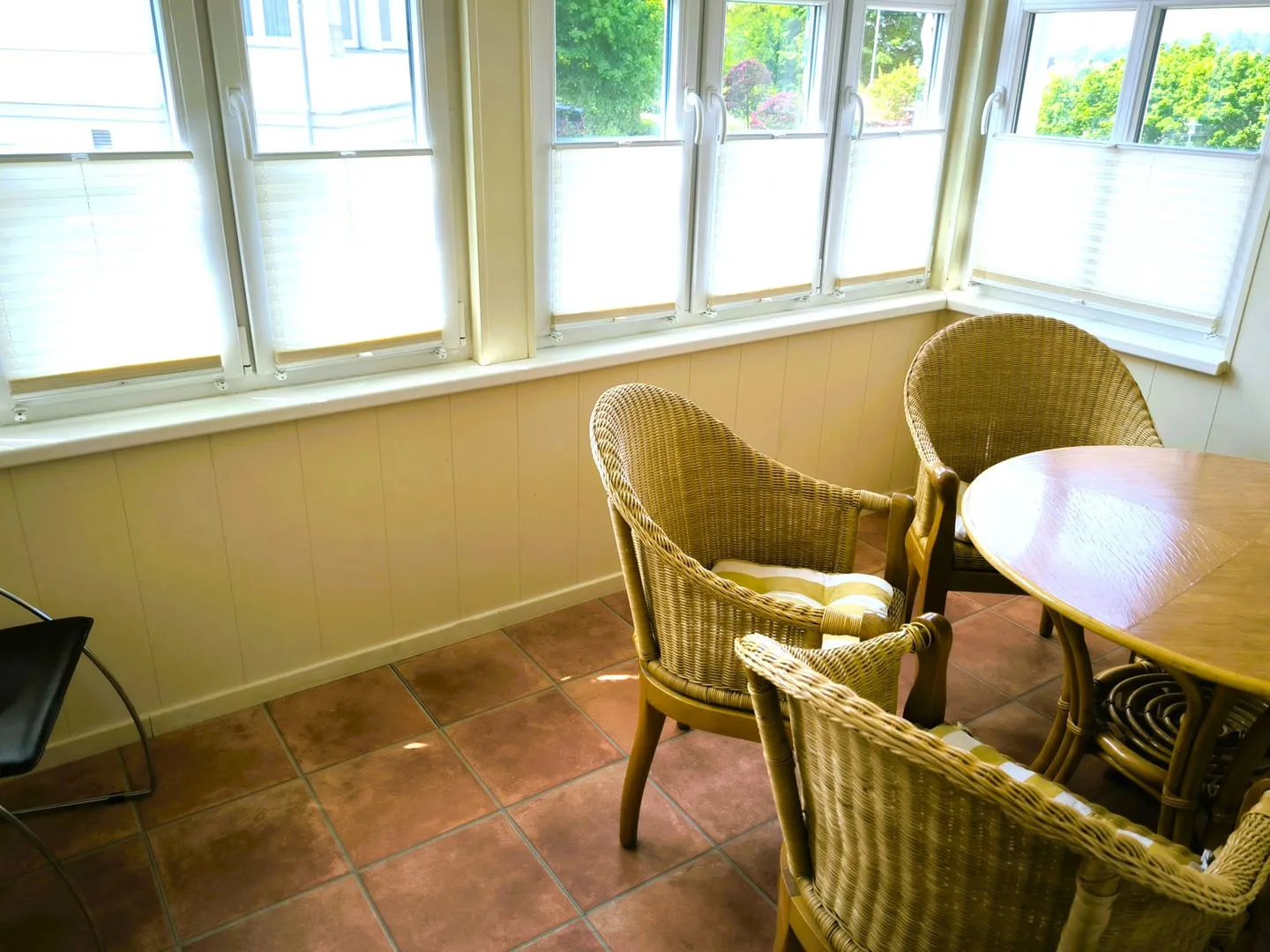 verglaste Veranda mit Esstisch und 4 Stühlen