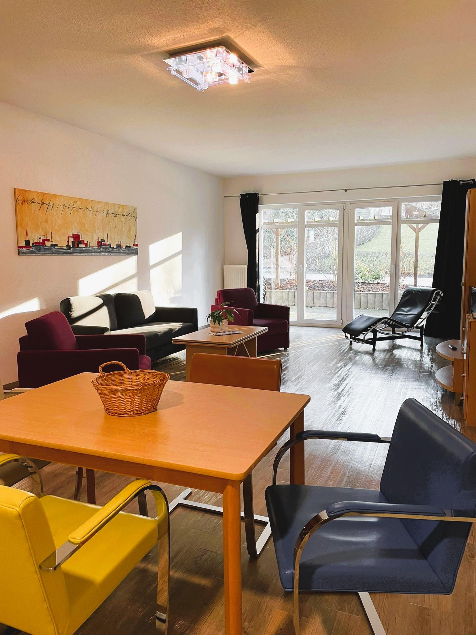 Die Ferienwohnung ist freundlich eingerichtet und hat eine Terrasse.